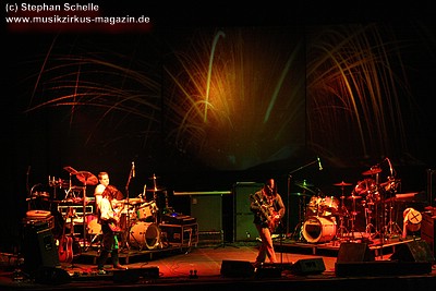 The Musical Box ist die offizielle Genesis-Coverband. Ihr Markenzeichen ist die naturgetreue Wiedergabe der Genesis-Konzerte aus den 70’ern. Aus diesem Grund kann man von ihnen schon nicht mehr als Coverband, sondern muss von einer 1:1 Kopie sprechen. Nach „Foxtrott”, „Selling England By The Pound” und „The Lamb Lies Down On Braodway” steht in 2008 die „A Trick Of A Tail”-Tour an. Für mich ein ganz besonderes Erlebnis, war „A Trick Of A Tail” aus dem Jahr 1976 doch die erste musikalische Begegnung mit Genesis für mich. Und ein weiterer Punkt, ich hab leider nie ein Konzert der Band in den 70’er Jahren erleben dürfen.