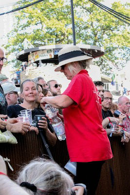 Besuchern gereicht wurde, die in der ersten Reihe vor der Bühne ausharrten.