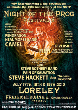 Die Einzelberichte findet ihr unter den u. a. Links der Bands. Es spielten am Freitag, den 17.07.2015: Lesoir (Niederlande) Beardfish (Schweden) Anneke van Giersbergen presents The Gentle Storm (Niederlande) Pendragon (Großbritannien) Neal Morse Band (USA) Camel (Großbritannien) Es traten am Samstag, den 18.07.2015 auf: Luna Kiss (Großbritannien) Haken (Großbritannien) Sylvan (Deutschland) Lazuli (Frankreich) The Enid (Großbritannien) Riverside (Polen) Fish (Schottland) Und am Sonntag, den 19.07.2015 waren zu sehen und zu hören: Special Providence (Ungarn) IO Earth (Großbritannien) Kaipa da Capo (Schweden) Steve Rothery Band (Großbritannien) Pain Of Salvation (Schweden) Steve Hackett plays "Genesis Revisited" (Großbritannien) |