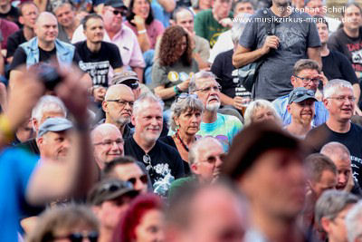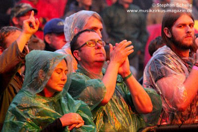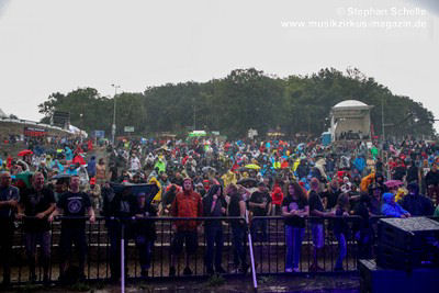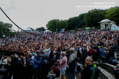 Nicht gelungen war dagegen die Organisation der – anscheinend neuen – Betreiber der Loreley. Die Sicherheitskontrollen hatten weniger etwas von Sicherheitsvorkehrung sondern eher von Geschäftstreiberei, denn hier wurde weniger nach gefährlichen Gegenständen gesucht, als nach Lebensmitteln, die für einen geringeren Umsatz sorgen konnten. Man hatte das Gefühl, das man Angst hatte, es könnte auf dem Gelände zu wenig verzehrt werden. Das führte dazu, dass Obst, Süßigkeiten, einzelne Brötchen, Kekse oder Erdnüsse, alles Produkte, die man nicht auf dem Gelände kaufen konnte, den Besuchern abgenommen wurden. Dafür war die Hygiene am ersten Festivaltag unter aller Kanone. Neben verdreckten Toiletten wurde auch am Nachlegen von Toilettenpapier gespart. Hier passt was nicht, was sich im nächsten Jahr auf jeden Fall verbessern muss. Ansonsten war die Stimmung auf dem Areal aber wieder sehr friedlich und entspannt.