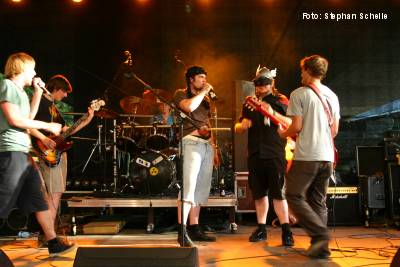 Gesang) sowie einige Gastmusiker gerade dabei, ihre letzten beiden Nummern