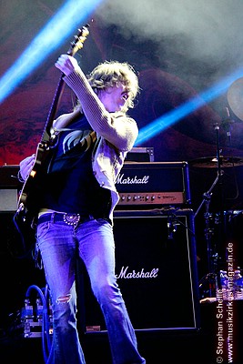 eine Akustische zur Hand, während Schlagzeuger Axenrot sich als