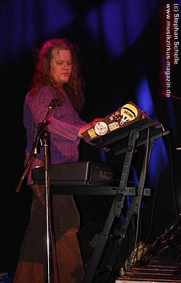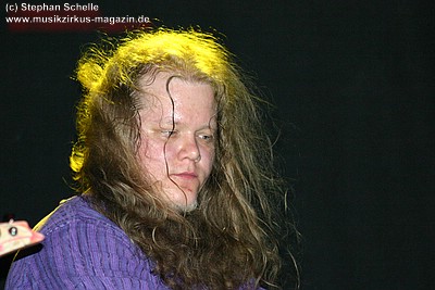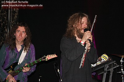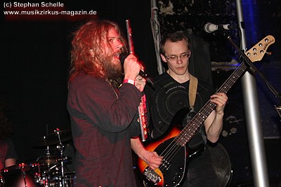 Alex, der im Gegensatz zum 2007’er Gig nun lange Haare hat, ging auf der kleinen Bühne so engagiert zur Sache, dass er unter anderem mal kurz das Mikro seines Schlagzeugers umriss. Auf der Bühne erinnert er durch den Einsatz seiner Querflöte immer wieder ein wenig an einen jungen Ian Anderson. Keyboarder Tarmo war ganz in seinem Tastenspiel versunken. Er zauberte aus seinen Gerätschaften sehr schöne Passagen, die mal unterstützend, dann wieder mit klassisch anmutenden Soli glänzten. Und Gitarrist Jaakko war ebenfalls ganz seinem Spiel verfallen, das er mit tollen Riffs und Soli versehen hatte. Schlagzeuger Ville zeigte, dass er es versteht auf eine ganz eigene, sehr faszinierende Art seine Trommelfelle zu bearbeiten. Nur Bassist Janne wirkte bei dem Gig wie der ruhende Fels in der Brandung. Er absolvierte den Gig souverän, aber sachlich nüchterner, als die anderen vier.