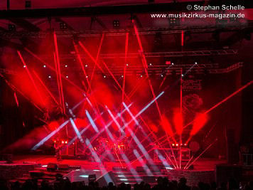 hinteren Bühnenrand sowie zahlreichen Lasern bestand. Die Polen, die zum fünften