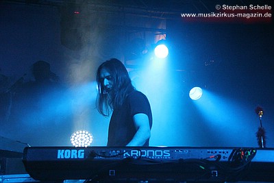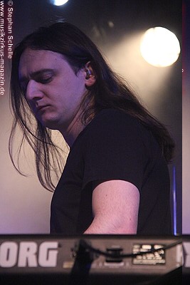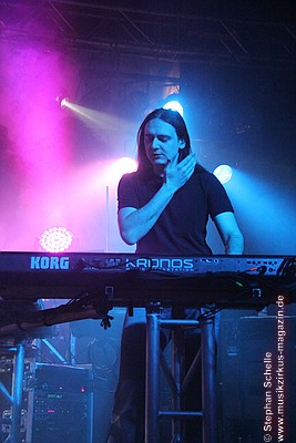 hinter seinen Keyboards ab. Man hatte das Gefühl, als wolle er seine