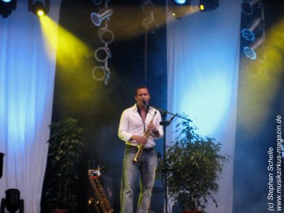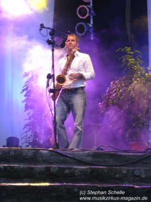 Aaron McDonald, der ihn hauptsächlich am Saxophon begleitete, trat er auf.