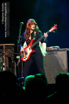 richtig auf der Bühne abging und oft ihre Haare durch die Luft wirbelte.