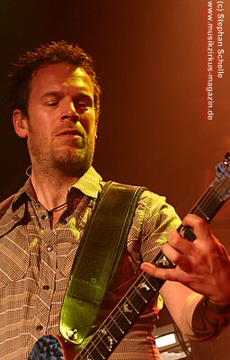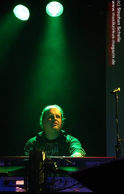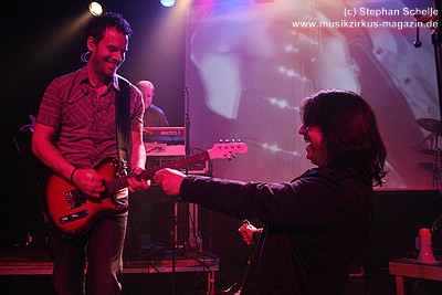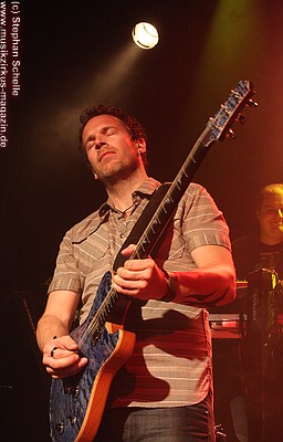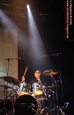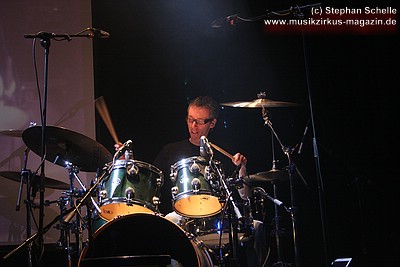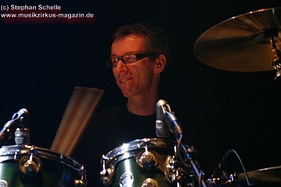 Es folgten in nicht chronologischer Folge Songs aus ihren bisherigen Alben. Dabei gingen die Fünf, wie man es von ihnen gewohnt ist, mit einer unglaublichen Perfektion und Spielfreude ans Werk, die sofort ansteckend war. Vor den Songs gab Yogi immer einige Erklärungen und so meinte er zu „The Gentle Art Of Swimming“, dass die Presse schrieb, die sie ja schon zu Beginn in die Prog-Ecke drängte, wobei Yogi doch nicht mal wusste, was Prog ist, jetzt wäre ihnen endlich der erste richtige Progsong gelungen. Das konnten sie nun gar nicht verstehen. Bei diesem Song hatte am Ende Schlagzeuger Marc Turiaux seinen Auftritt, denn die Band verließ die Bühne um den Fokus ganz auf Marc’s Schlagzeugsolo zu legen. Und das war wirklich sehr Nuancenreich und filigran ausgearbeitet.