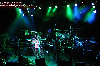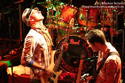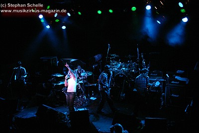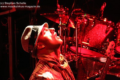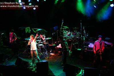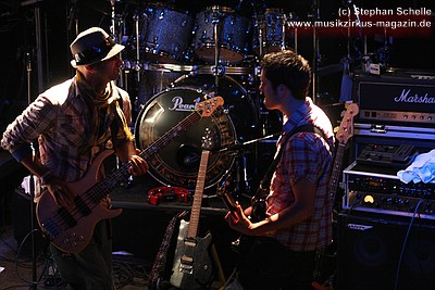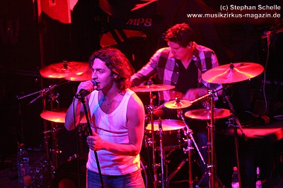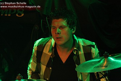 Auf dem Programm von Soley Mourning standen vor allem die Eigenkompositionen ihrer beiden Alben. Dabei ging es hauptsächlich sehr druckvoll und rockig zu. Vor allem Schlagzeuger Ash machte den Eindruck, als wollte er in der gut 50minütigen Show seine Schlagzeugfelle durchschlagen, so heftig bediente er sein Instrument. Sänger Mat hüpfte für meinen Geschmack etwas übermotiviert über die Bühne, machte am Mikro aber eine gute Figur.