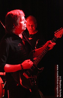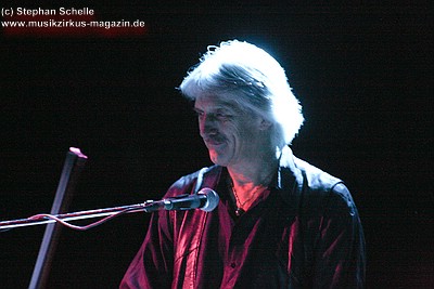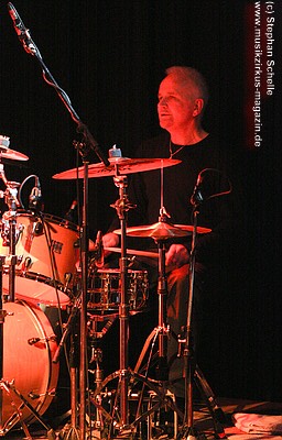 Während Steve die Band vorstellte, gab es einen kurzen Exkurs in die Welt der Vinylscheiben und CDs. Denn, wie Steve bemerkte, konnte man auf den LPs wenigstens die Credits lesen und muss sich nicht die Augen verderben weil der Grafiker auf der CD den Text mal wieder in kleiner gelber Schrift auf weißem Untergrund platziert hat. Er stellte besonders heraus, dass es ihm eine Freude ist wieder mit Stuart Elliott zu spielen, mit dem er bereits vor 38 Jahren die Band gründete. Und schon war er bei seinem Alter bzw. dem Alter der Besucher, bei dem er doch einige ausmachte, die sogar älter waren als er.