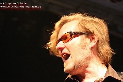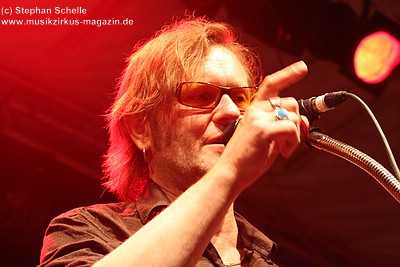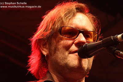 Ich muss gestehen, dass ich bisher fast nichts von Stoppok kannte – bis auf das wohl bekannteste Stück von ihm „Dumpfbacke“. Während des Konzertes meinte er u. a., dass er in einige Gesichter blicken würde, die so fragend aussehen, als würden sie sagen wollen: „Warum hab ich bisher von dieser Musik noch nichts gehört?“. Diese humorvolle Ansage war natürlich ein geschickter Hinweis auf den CD-Stand in der Mitte des Platzes.