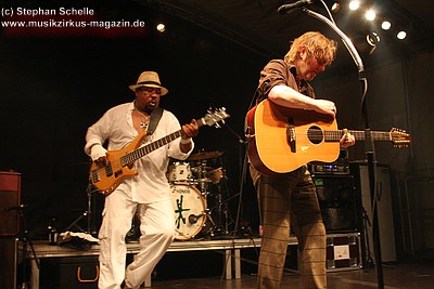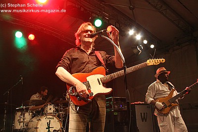 Stoppok stehen für gradlinigen, deutschsprachigen Rock, der einfach nur Spaß macht. An der ein oder andere Stelle ließ er dann auch eine Spur Bluesrock raus. Und so lieferte das Quartett einen tollen zweistündigen Gig, bei dem auch Petrus ein einsehen hatte und seine Schleusen geschlossen hielt.