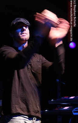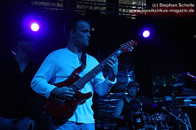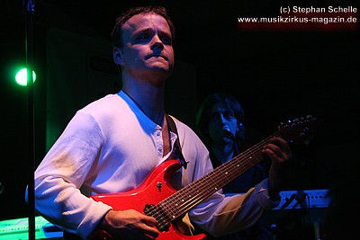 Der Set, den sie an diesem Abend spielten bestand hauptsächlich aus Stücken ihres Debütalbums „Beautiful & Monstrous“. Das absolute Highlight des Gigs war aber das Sieges Even-Stück „Eyes Wide Open“, das durch eine herrliche Melodie und einen tollen Refrain besticht. Arno hatte dann auch gleich das Publikum, das die Stücke der Band nicht kannte, schnell im Griff und animierte sie zum Mitsingen des Refrains, was hervorragend klappte und die Stimmung hoch puschte. Arno zeigte während des gesamten Gigs seine Qualitäten als Frontmann. Die anderen Musiker zeigten ebenfalls wie gut sie an ihren Instrumenten sind.