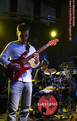 Die Band hatte sich im letzten Jahr aus Markus Steffen (Gitarre) und Arno Menses (Gesang), die von der bayrischen Progmetal-Band Sieges Even kamen sowie Ralf Schwager (Bass) und David Bertok (Schlagzeug) die beide von der Band Dreamscape dazu stießen und Roel van Helden (Schlagzeug) gebildet. Waren die Stücke von Sieges Even manchmal etwas verkopft und komplex angelegt, so legen die fünf von Subsignal bei ihrem Material mehr Wert auf Melodien, was beim Publikum sehr gut ankam.