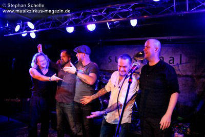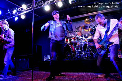 Es ist immer wieder ein Genuss Markus Steffen bei seiner Gitarrenarbeit zuzuschauen und zuzuhören. Mal geht er filigran ans Werk, dann wiederum warf er mächtige Riffs in den Raum. Und Arno Menses ist ein klasse Sänger und Shouter. Er hatte das Publikum sofort im Griff und machte jeden Spaß, der aus dem Publikum kam mit. Ralf‘s druckvoller Bass und der traumhaft spielende Schlagzeuger Dirk Brand sorgten für den Grundrhythmus, während Markus Maichel an den Tasten immer wieder wunderbare Melodien und Harmonien einstreute und dem Sound einen proggigen Anstrich verlieh.
