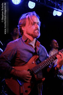 Danach stand „Feeding Utopia“, ebenfalls von „Touchstones“ an. Das Stück wurde unter großem Applaus von den Fans gefeiert und Dirk Brand bekam seine Chance, seine Qualitäten hinter der Schießbude zu beweisen. Dazu verließen alle außer ihm die Bühne und Dirk brannte im wahrsten Sinne des Wortes ein perkussives Feuerwerk an seinem Schlagzeug ab. Er liefert ein ausuferndes, druckvolles und mitreißendes Solo, das ihm - zu Recht - tosenden Applaus einbrachte.