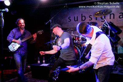Beim Blue Notez Club handelt es sich um eine kleine Location, die mitten in einer Wohnsiedlung (in direkter Nähe zur B1) liegt und Teil der Gesamtschule Gartenstadt ist. Der gemeinnützig geführte Club liegt im Untergeschoss des Gebäudes und hat eine recht große Bühne, die allerdings leider von zwei Pfeilern unterbrochen wird. Dies führt dazu, dass bei einer fünfköpfigen Band wie Subsignal, nicht alle in der Mitte Platz haben, so musste der neue Keyboarder Markus Maichel an den Außenrand ausweichen, was der Atmosphäre aber nicht schadete. Der Club verströmt jedenfalls eine sehr gemütliche und familiäre Atmosphäre und hat etwas von einem Jugendheim. Das Personal war äußerst nett und zuvorkommend, was den Charakter dieser gemeinnützigen Einrichtung auch ausmacht.