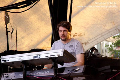 Volker an seinen Keyboards mit Xylophon artigen Sounds für eine jazzige