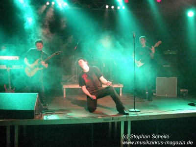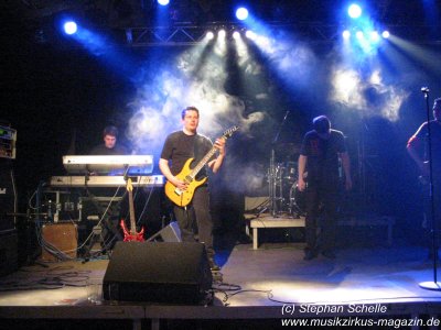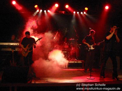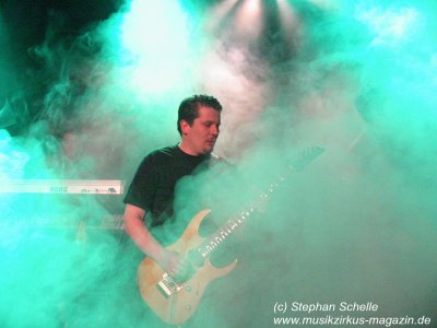 Trotz gesundheitlicher Probleme bearbeitete Kay die Saiten seiner Gitarre in einer Qualität, die sich mit den „Großen“ messen lassen kann. Mal streichelte er die Seiten und zauberte Gänsehautbringende Sounds wie von Steve Rothery von Marillion oder wie es Steve Hackett bei Genesis in der Vergangenheit so glanzvoll vollführte, dann haute er dem Publikum knallharte Gitarrenriffs um die Ohren. Auch Marco ließ seine Stimme in den verschiedenen Tonarten spielen, mal druckvoll, dann wieder sehr sanft. Immer bewegte er sich so nah am Bühnenrand, dass ich darauf wartete, dass er jeden Moment von dieser in den Zuschauerraum springt. Die drei anderen, die ihre Instrumente sehr akzentuiert einsetzten, standen dem in nichts nach.