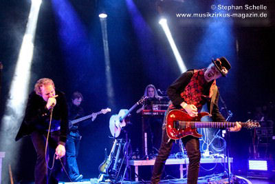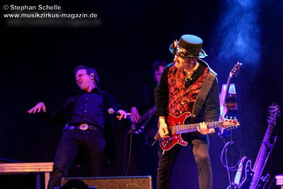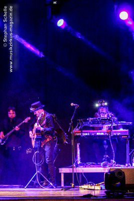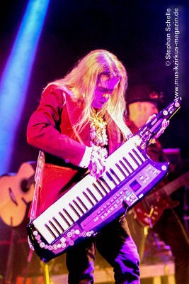 sondern glänzte auch mit tollem Solo am tragbaren Keyboard. Und auch die Gitarristen