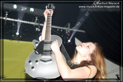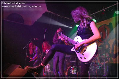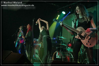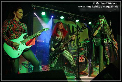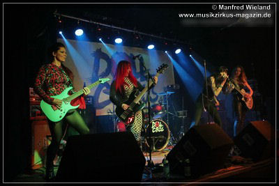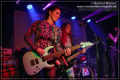 Los ging es dann mit einem lauten „Shalalala“, der Beginn des Titels „Doll Circus“. Weiter im Programm ging es mit der Nummer „Frontporch“, und ab da wusste der Letzte im Saal, was Spice’n‘roll bedeutet, wie die Damen liebevoll ihre Musik nennen. Bei der siebten Nummer staunte das Publikum. „Big Balls“? Ist doch von AC/DC? Logisch, aber als bekennender AC/DC-Fan ließ es sich Shake nicht nehmen ein Stück von der legendären Band zum Besten zu geben. Es folgten noch weitere sieben Nummern, bis sie mit der Cover-Nummer „Blitzkrieg Pop“ den Schlussakkord setzten.