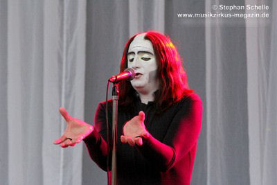 Armen auf der Bühne und bewegte nur langsam den Kopf von rechts nach links.