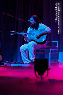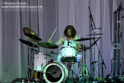 Vorhänge begrenzten die Bühne, auf der alle Instrumente in weißen Farben