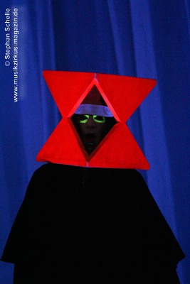 Gabriel’s zeigte und den mit Neonfarbe bemalten Augen auf die Bühne. Während