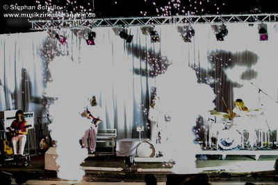 in Weiß gehalten. Und auch ein weiteres Element aus Rockkonzerten der