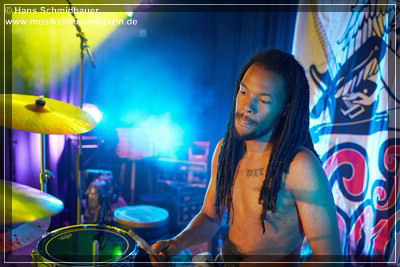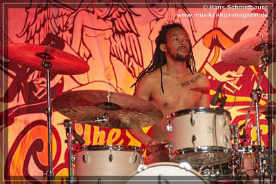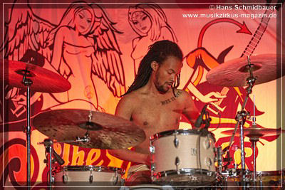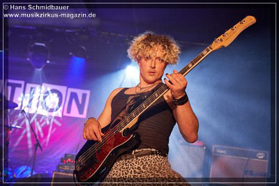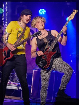 kurzerhand den Bass im Spagat spielte, kam das Publikum aus dem Staunen