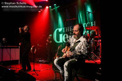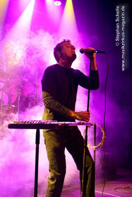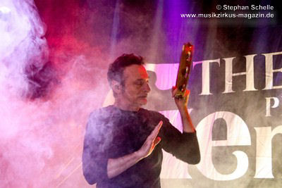 Ein elektronisches Intro leitet zunächst in das mehr als zweistündige Programm ein, zu dem die Band dann auf die Bühne kam, gefolgt von der Einspielung des Hackett-Textes. Danach legte die Band gleich mit dem Klassiker „Watcher Of The Skies” los und startete in einen grandiosen Auftritt, bei dem man mit geschlossenen Augen das Gefühl hatte, dass das Original auf der Bühne agieren würde. Und genau das ist auch das Ziel der Band, eine Show zu bieten, die dem Original musikalisch in Nichts nachsteht. Den Beweis dafür lieferte schon nach diesem ersten Stück der brausende Applaus des Publikums. Und die Stimmung sollte noch besser werden, denn es wurde von einigen Besuchern recht textsicher mitgesungen, bei einigen Stücken rhythmisch mitgeklatscht und nach den Songs wollte der Applaus gar nicht mehr enden, so dass eine unglaubliche Stimmung entstand, die von Band auf’s Publikum und wieder zurück schwappte. Und die Bandmitglieder hatten sichtlich großen Spaß an dem Auftritt, denn sie kamen zeitweise aus dem Grinsen kaum noch heraus.