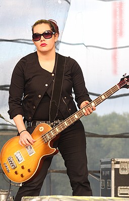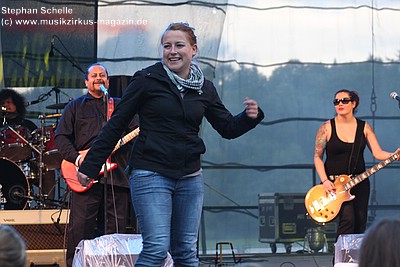 längerem Zureden eine Zuschauerin erweichen und stieg zu der Band auf die
