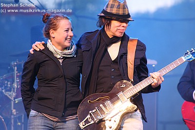 Bühne. Der Lohn, ein Kuss vom zweiten Gitarristen und ein paar Präsente der