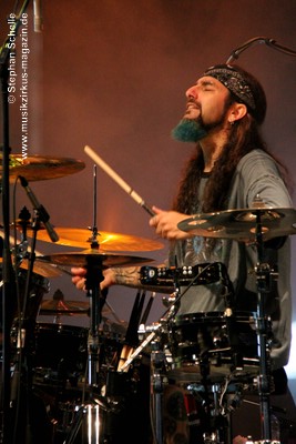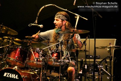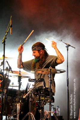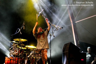 Becken in die Hand und warf es hoch zur Seite. Danach gab er noch ein