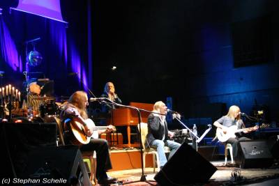 Die fünf boten an diesem Abend einen Querschnitt aus ihrem Gesamtwerk. Die Setlist war zur 2004’er Acoustically Driven-Tour erheblich verändert worden. Vom 70’er Debütalbum „Very Eavy … Very Umble“ bis hin zum letzten Studioalbum „Sonic Origami“ aus dem Jahr 1998. Dabei ließen sie zwar sieben Alben wie zum Beispiel „Wonderland“, „Abominog“, Head First“ und „Raging Silence“ aus, hatten dafür aber mit dem Stück „Pilgrim“ vom 73’er Album „Sweet Freedom“ ein Stück in ihrem Repertoire, das sie bisher noch nie live gespielt haben. Wie Mick im Interview angab, hatte es sich bei den „elektrischen“ Konzerten auch nie angeboten, passt aber wunderbar in den akustischen Set. Und bei diesem Titel merkte man auch, dass die Briten eine Menge an Emotion in ihn hineinlegten, denn das Stück ging, wie viele andere auch, direkt unter die Haut.