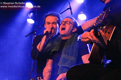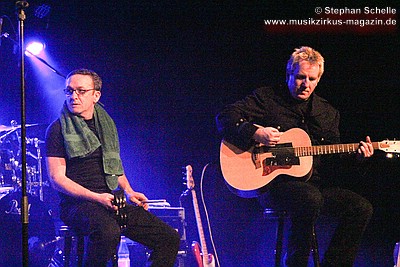 mit akustischen Instrumenten bewaffnet auf die Bühne. Derek und Anthony