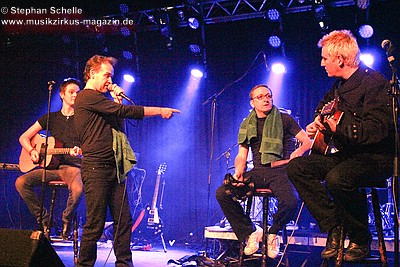 drei waren nun am Bühnenrand auf Barhockern zu sehen, während Andy wieder
