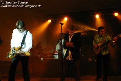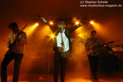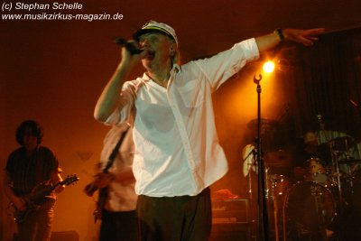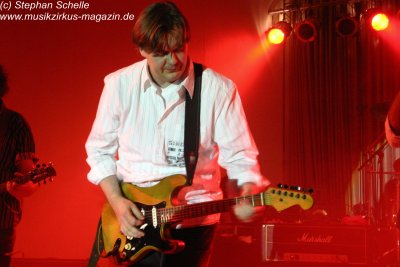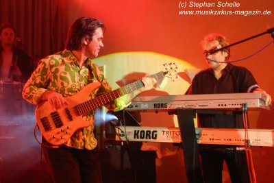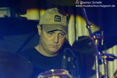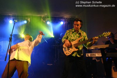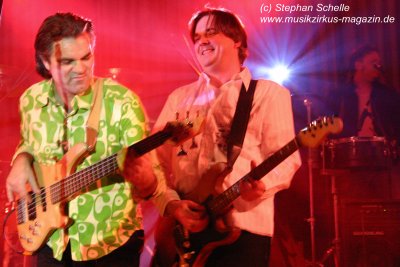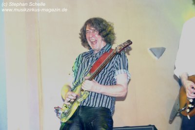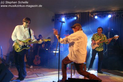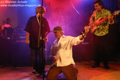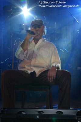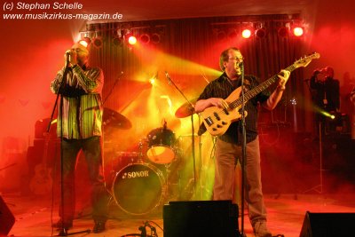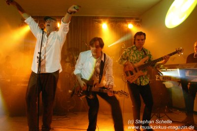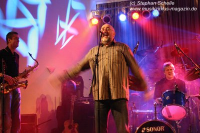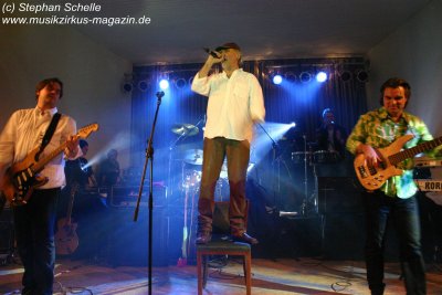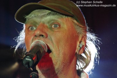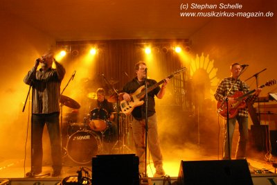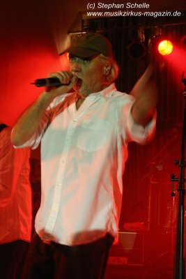 Richtig ab ging es dann aber mit dem folgenden „In meinem Kaff“, da knallten sie einen ordentlichen Sound raus, das so manchem Einwohner den Hut vom Kopf haute. Die acht auf der Bühne machten einen sehr guten Eindruck, was sich vor allem durch ihre Spielfreude zeigte. Besonders hervorheben muss man, dass Reiner Hänsch gesundheitlich nicht ganz auf der Höhe war, was man ihm aber überhaupt nicht anmerkte. In ihrem Programm brannten sie dann ein Feuerwerk aus ganz alten Stücken, Werken aus der letzten Vergangenheit (aus den Alben seit ihrem Comeback) sowie brandneuen Titeln ab. Es zeigte sich, dass so mancher den Text des ein oder anderen Liedes noch drauf hatte, denn es wurde fleißig mitgesungen.