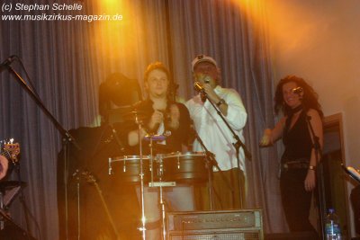 Ihr Repertoire bestand aus Coverversionen so bekannter Stücke wie „I Feel Good“, „Sexbomb“, „Rockabilly Willy“ und „Skandal im Sperrbezirk“. Mit ihrem letzten Stück „Kopfschuss“, das im Original aus der Feder von Zoff stammt, erwiesen sie der Headlinerband dann auch noch ihre Ehre. Das war alles ganz nett, riss das Publikum aber noch nicht vom Hocker, was sich auch dadurch zeigte, dass die Anwesenden noch recht verstreut in der Halle verweilten und nicht bis an die Bühne herantraten. Das sollte sich aber kurz darauf ändern.