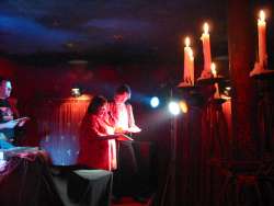 Kerzenleuchter (mit echten Kerzen) auch an den seitlichen Wänden fest