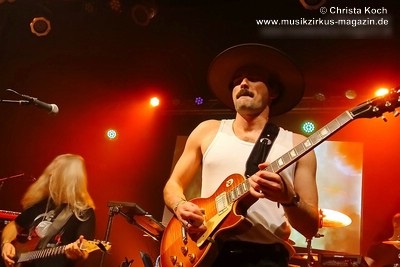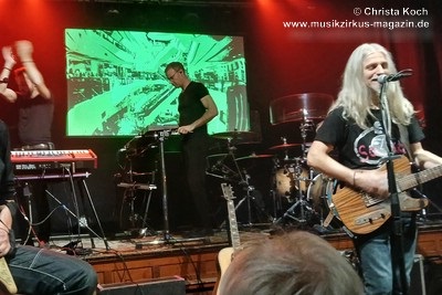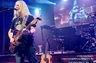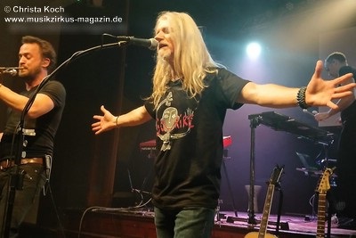 Pünktlich betraten dann die fünf Gallier, unter aufbrandendem Applaus, die exzellent beleuchtete Bühne. Sie waren über diese lautstarken Vorschusslorbeeren und so einen Beginn sichtlich überrascht. Damit hatten sie so wohl nicht gerechnet. Deutsche Begrüßung, wie üblich durch Dominique Leonetti. Dann geht es auf eine gemeinsame 150-minütige Non-Stopp-Reise durch eine fast 30-jährige Bandgeschichte.